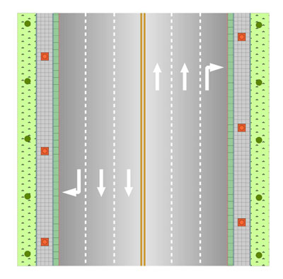 to both sides of road, via Sand-based Water Permeable Drain Cover